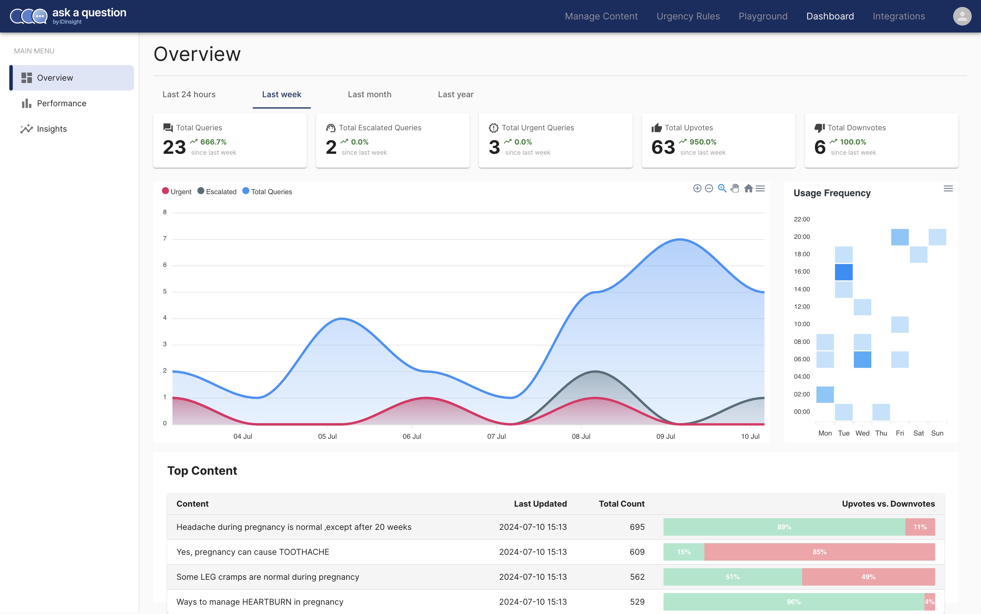 The ethos of AAQ is that you care deeply about your users and are continuously refining and adding content to improve user experience. A live dashboard is the first step. It allows you to understand the usage of your solution, your users, and their feedback.