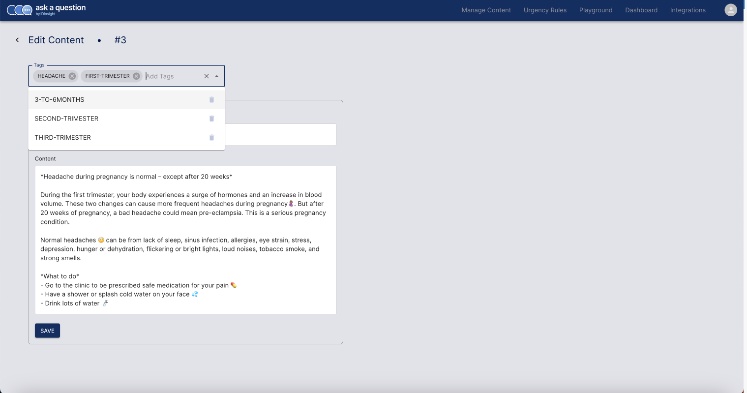 On the Admin App, it is now possible to add tags to contents to categorise them.