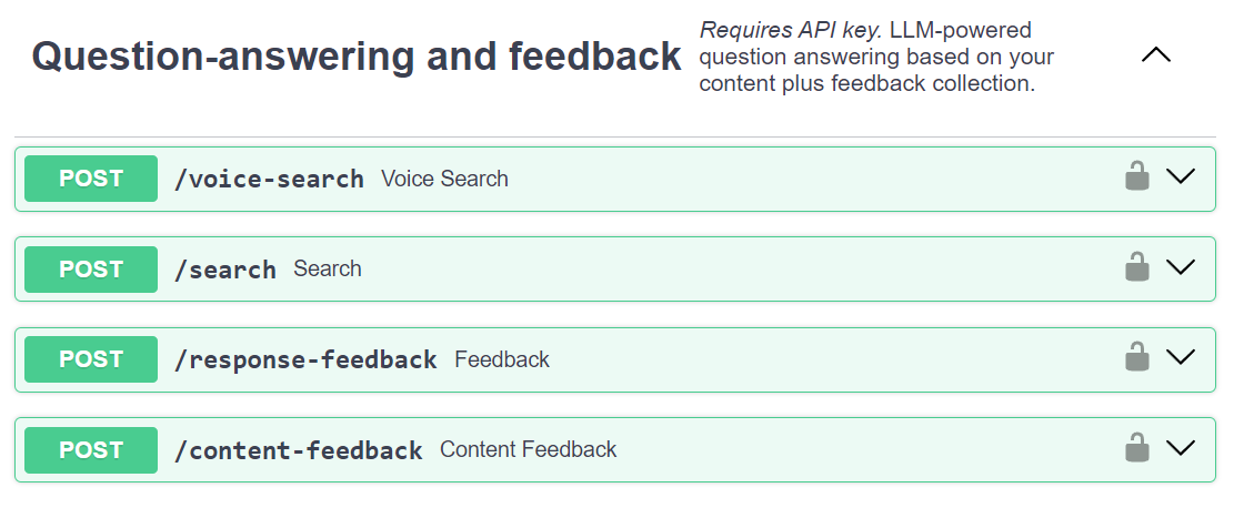 The service also provides two endpoint to capture feedback from users. One to capture feedback for the response returned and the other for the content items retrieved.
