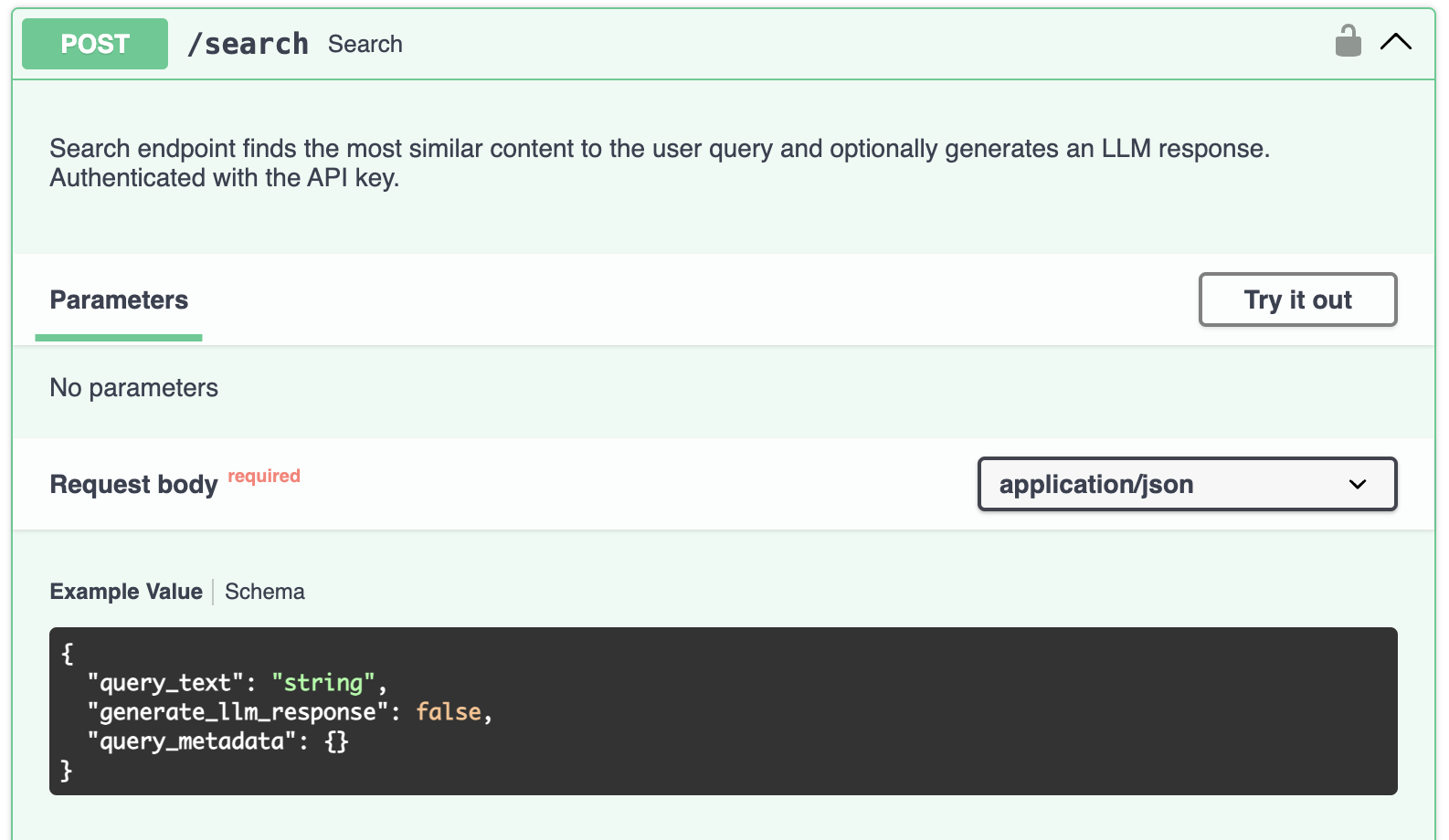 This service returns the contents from the database with the most similar vector embeddings to the question and optionally also uses an LLM to construct a custom answer to the user's question using the retrieved contents.