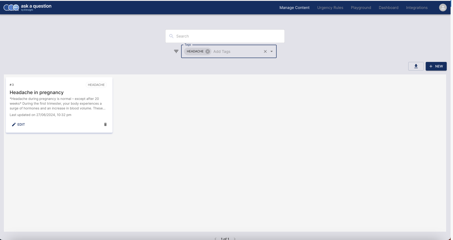 We also added the possibility of filtering contents using tags for a seemless content management experience. On the landing page, you can use the Tags bar to filter contents based on tags.